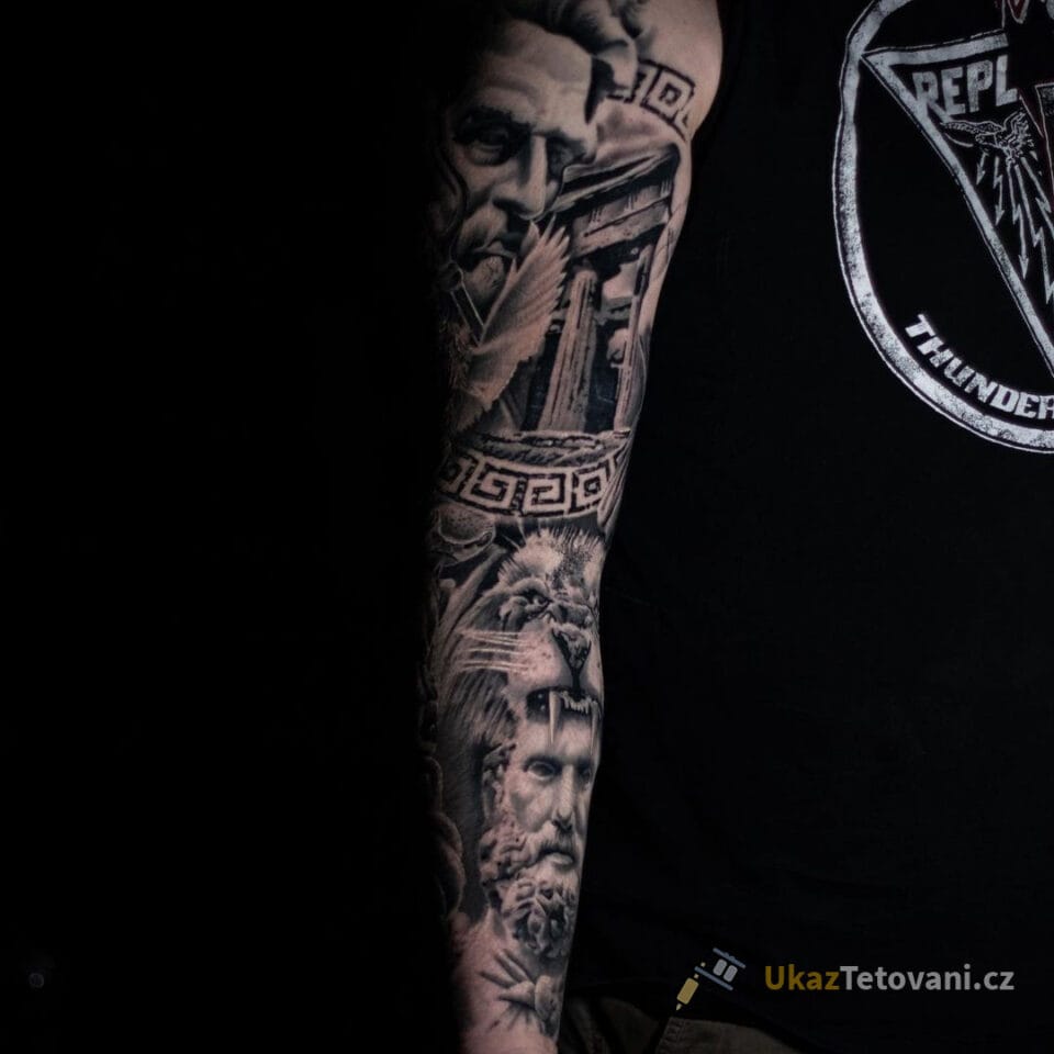 Tetování znaky a symboly, zvířata, portréty, bojovníci, rukáv
