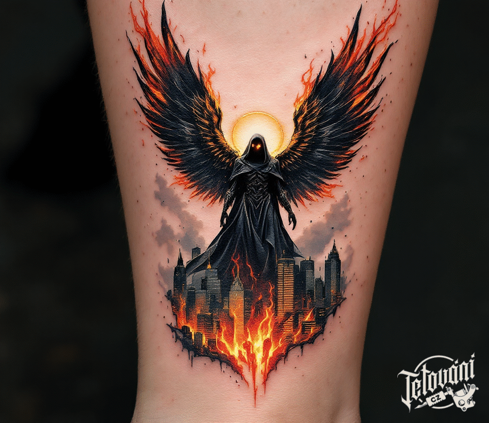 Tetování znamení zla, anděl smrti na noze