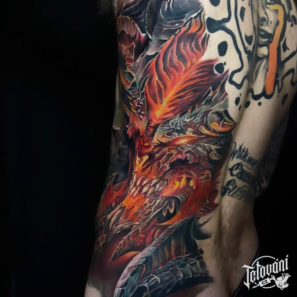 Tetování znamení zla, ďábel na zádech