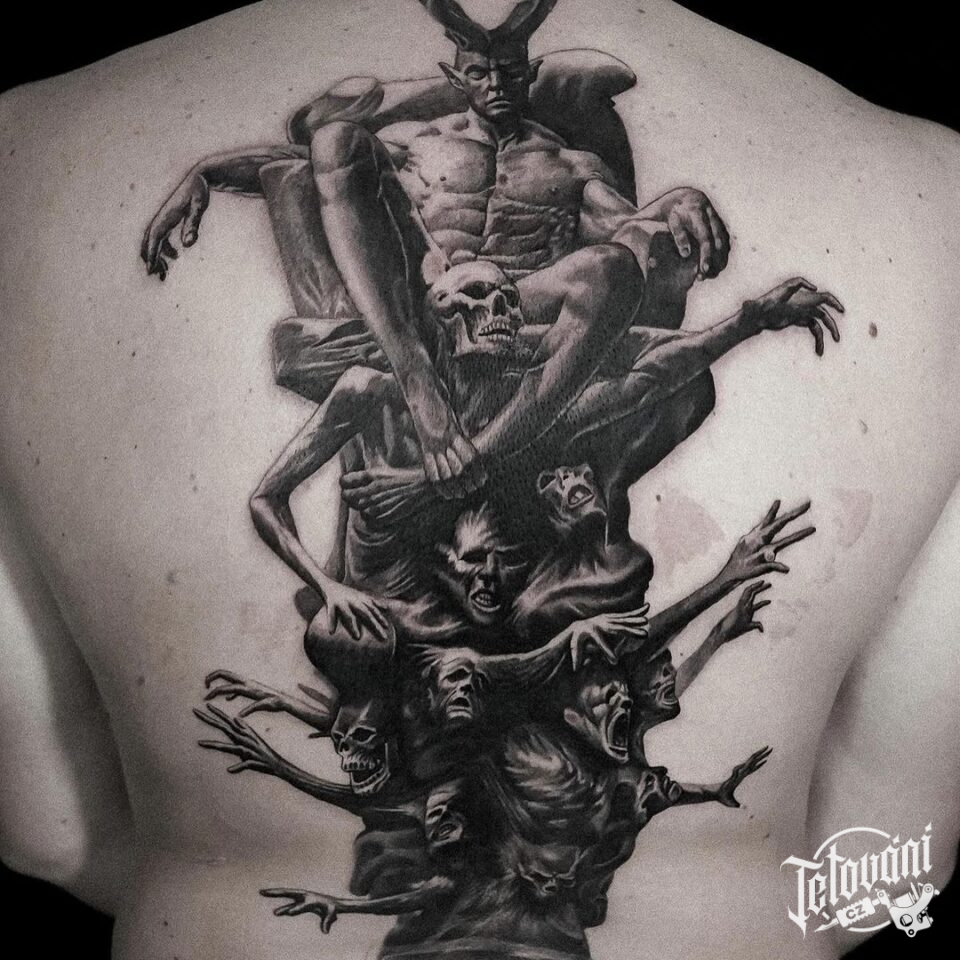 Tetování znamení zla, ďábel na zádech