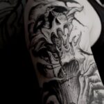 Tetování znamení zla, lebka s rukou, rukáv