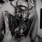 Tetování znamení zla, pták, portréty na zádech