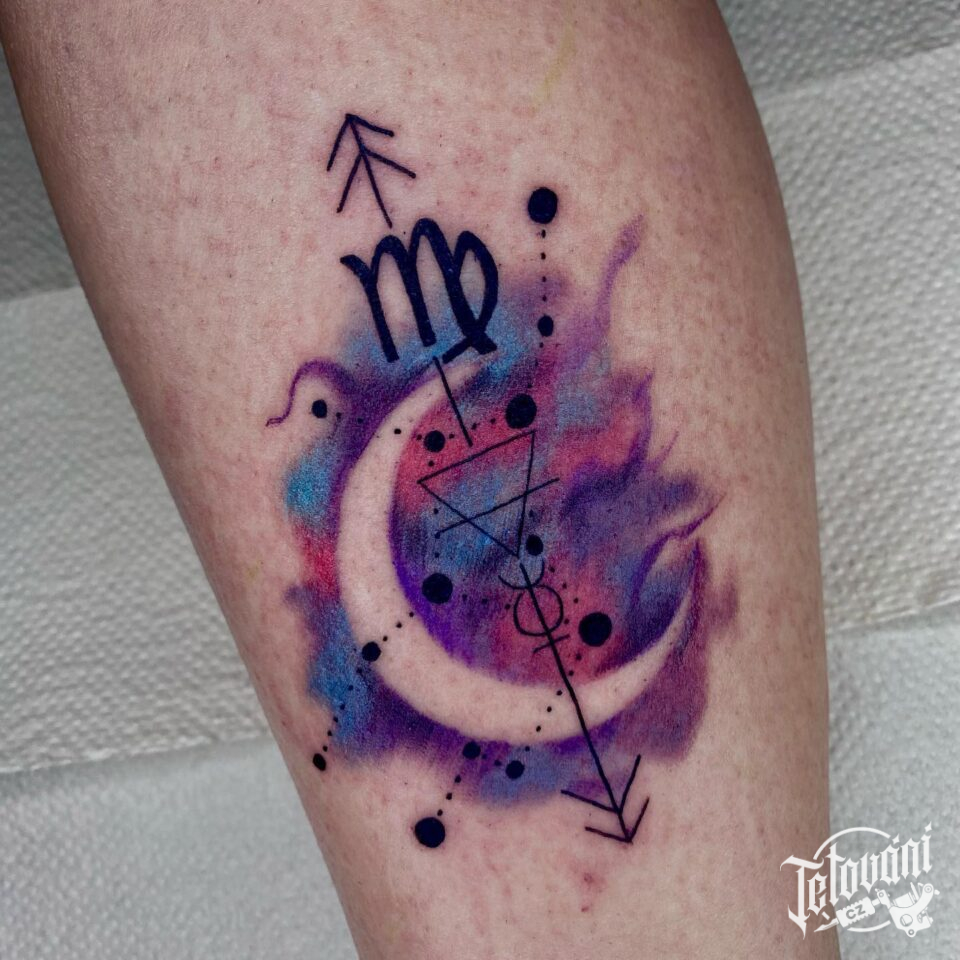 Tetování znamení zvěrokruh Blíženci, měsíc na lýtko