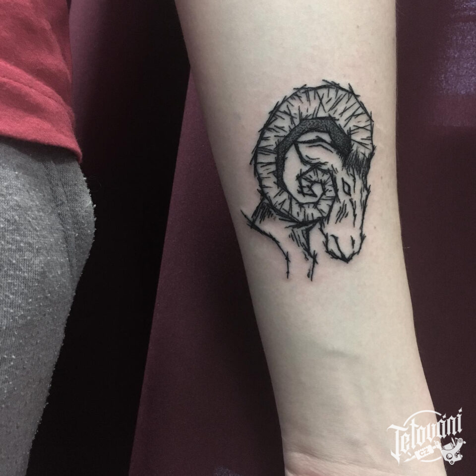 Tetování znamení zvěrokruhu a zvíře beran na předloktí