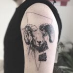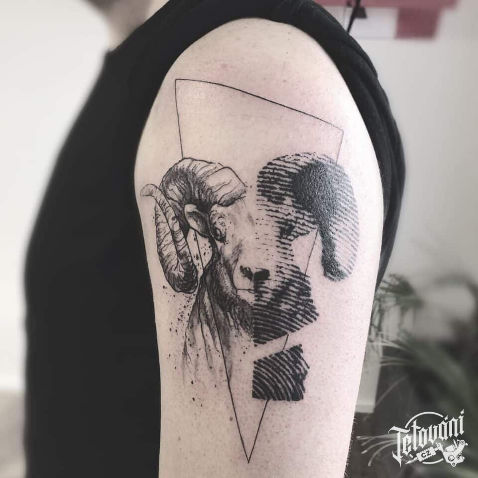 Tetování znamení zvěrokruhu a zvíře beran na rameno