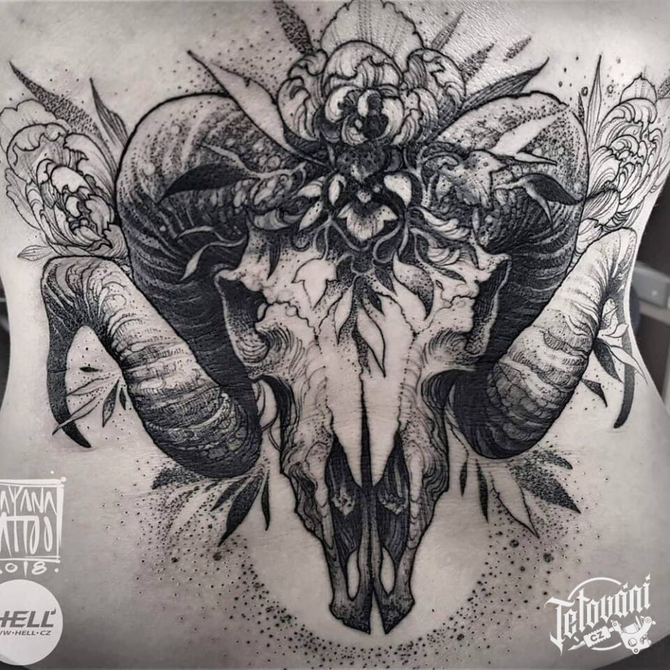 Tetování znamení zvěrokruhu a zvíře beran na záda
