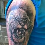 Tetování znamení zvěrokruhu a zvíře lev na rameno