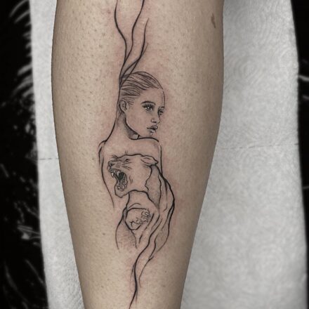 Tetování znamení zvěrokruhu a zvíře lev na rameno