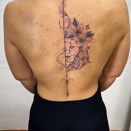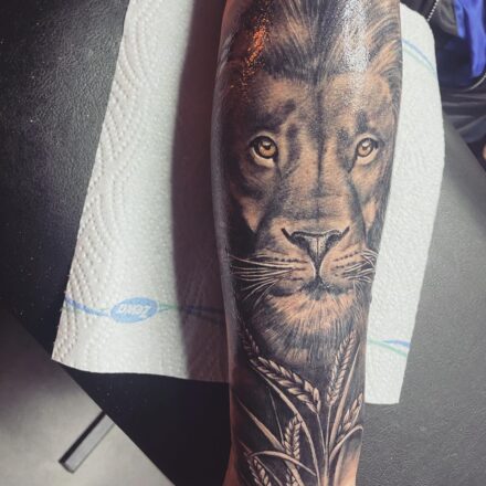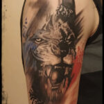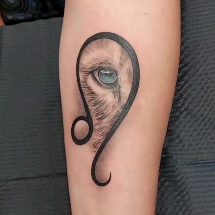Tetování znamení zvěrokruhu a zvíře lev na rameno