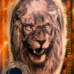 Tetování znamení zvěrokruhu a zvíře lev na rameno
