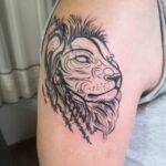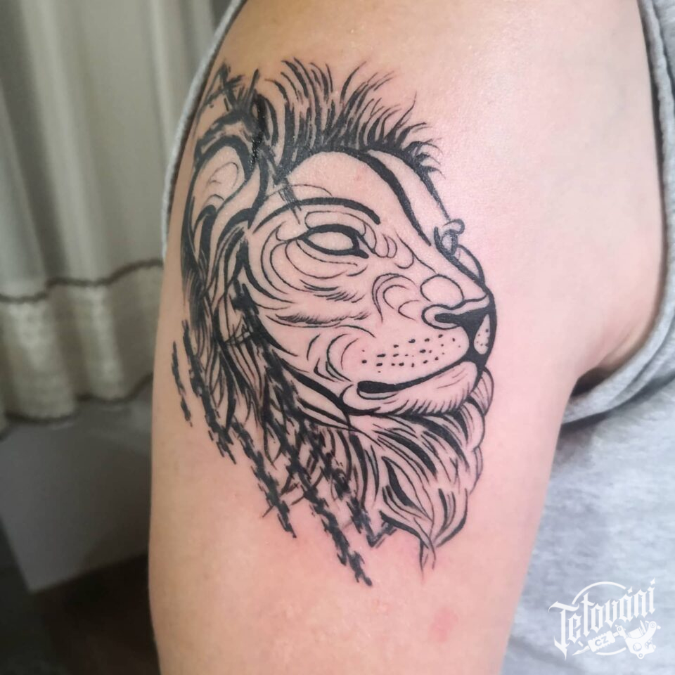 Tetování znamení zvěrokruhu a zvíře lev na rameno