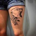 Tetování znamení zvěrokruhu a zvíře lvice na stehno