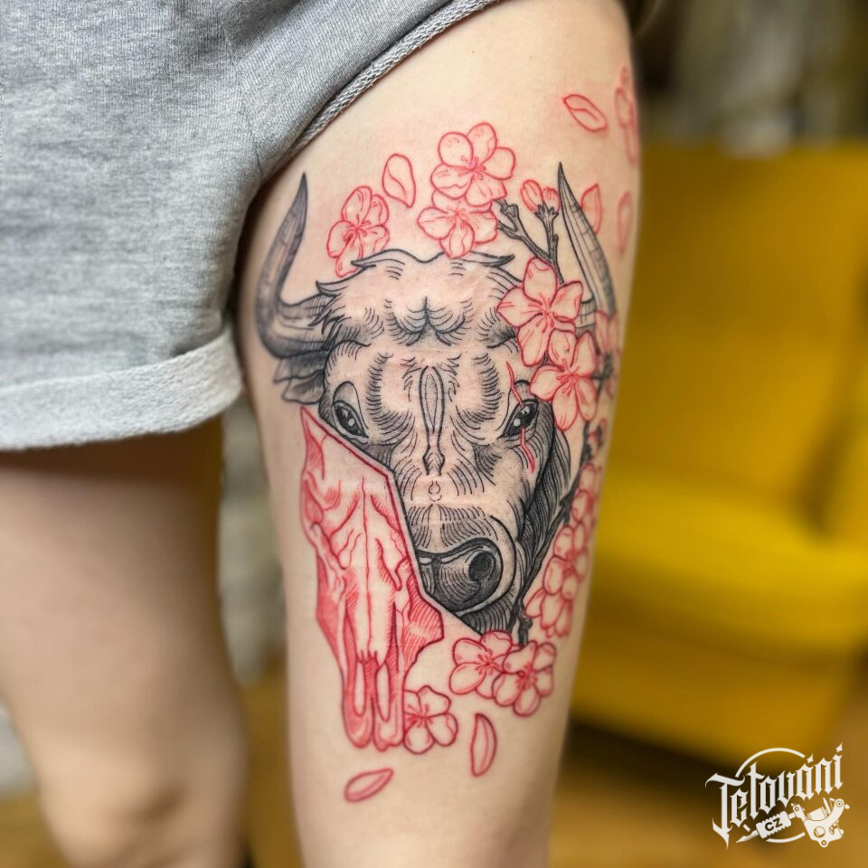 Tetování znamení zvěrokruhu a zvíře na stehno