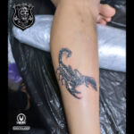 Tetování znamení zvěrokruhu a zvíře štír na lýtko
