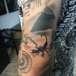 Tetování znamení zvěrokruhu a zvíře štír na rameno