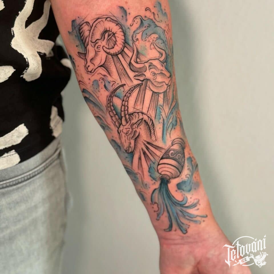 Tetování znamení zvěrokruhu, Beran, Býk, Kozoroh na předloktí