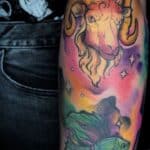 Tetování znamení zvěrokruhu, beran, býk, ryba, vesmír na předloktí