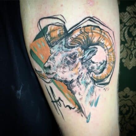 Tetování znamení zvěrokruhu, beran, květiny a oko na ruce