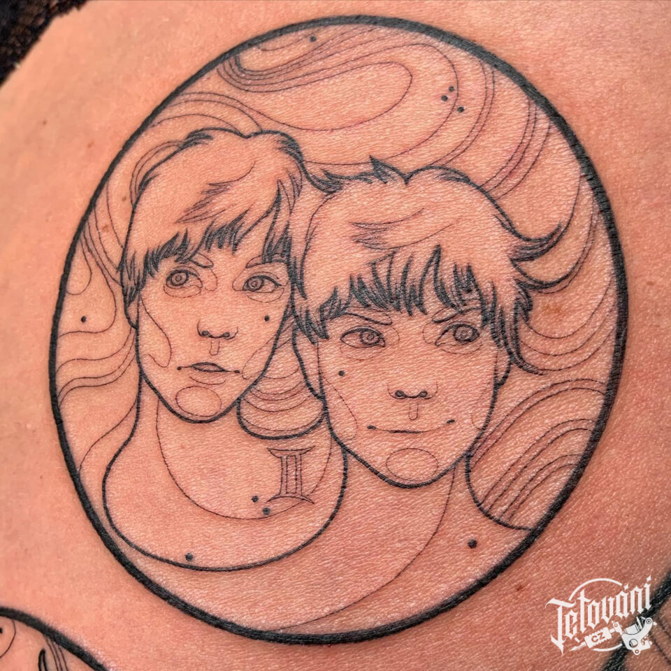 Tetování, znamení zvěrokruhu, blíženci na paži