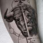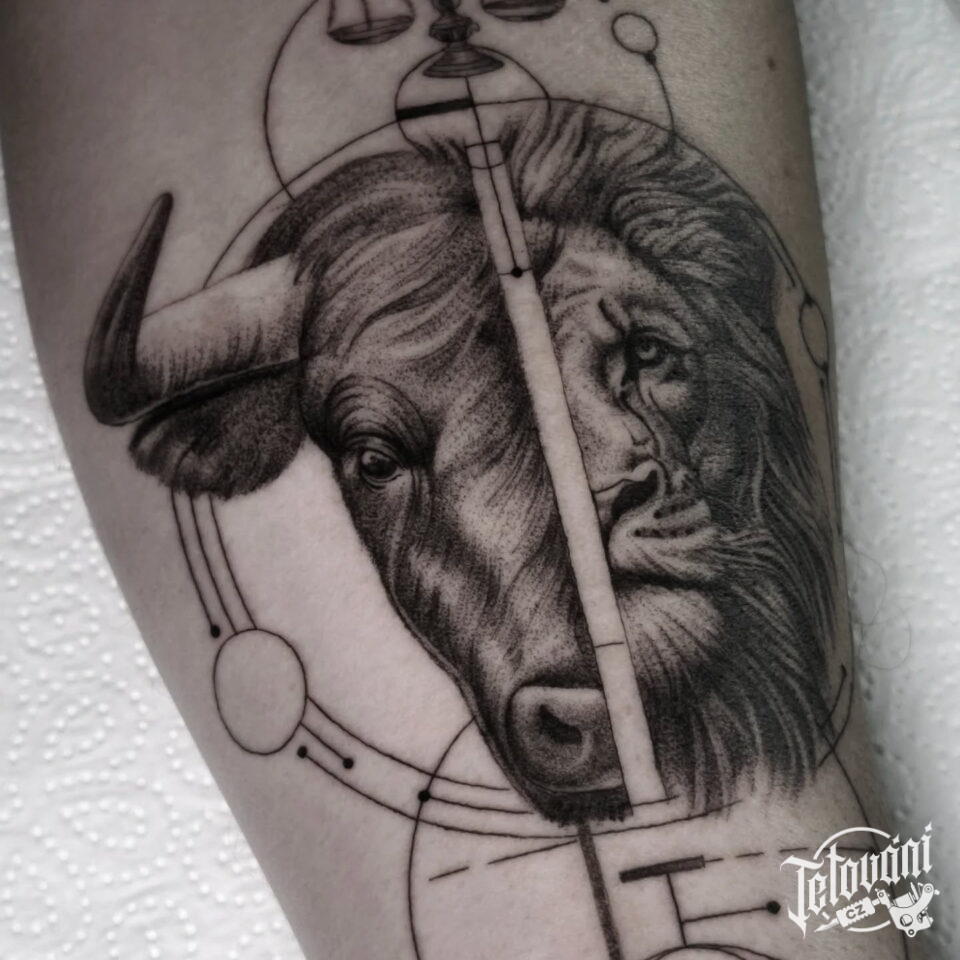Tetování znamení zvěrokruhu býk a lev na předloktí