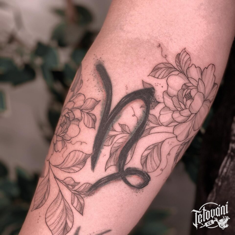 Tetování znamení zvěrokruhu, květiny na předloktí