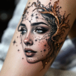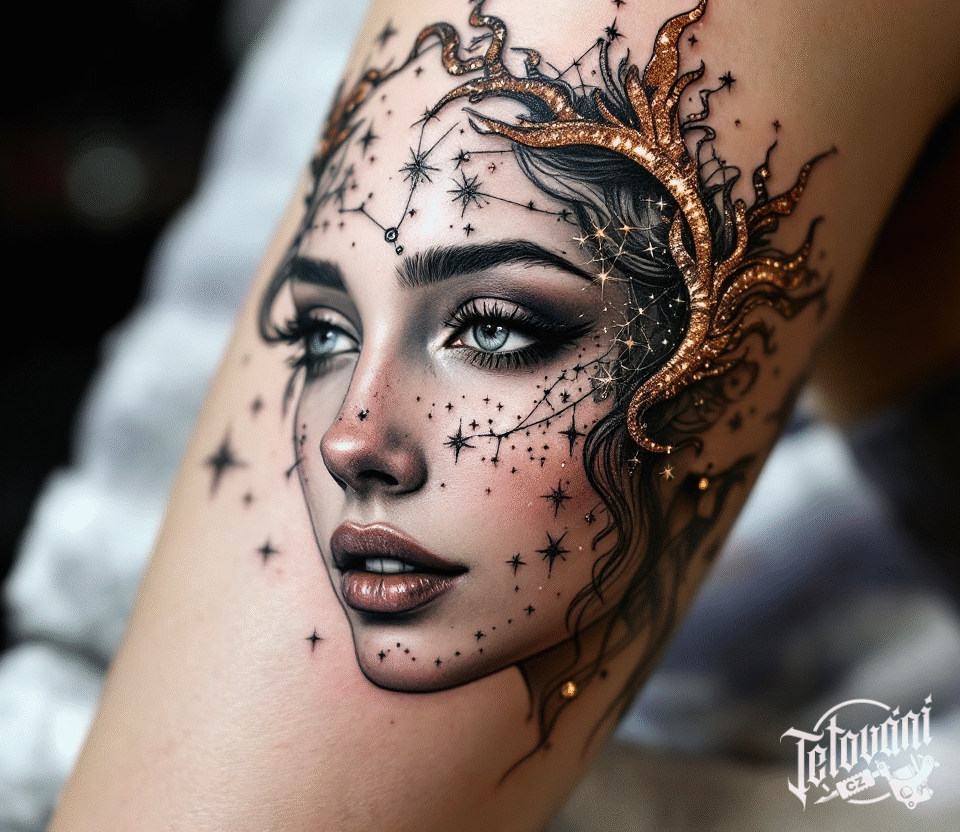 Tetování znamení zvěrokruhu panna a souhvězdí panny na rameno
