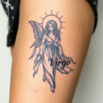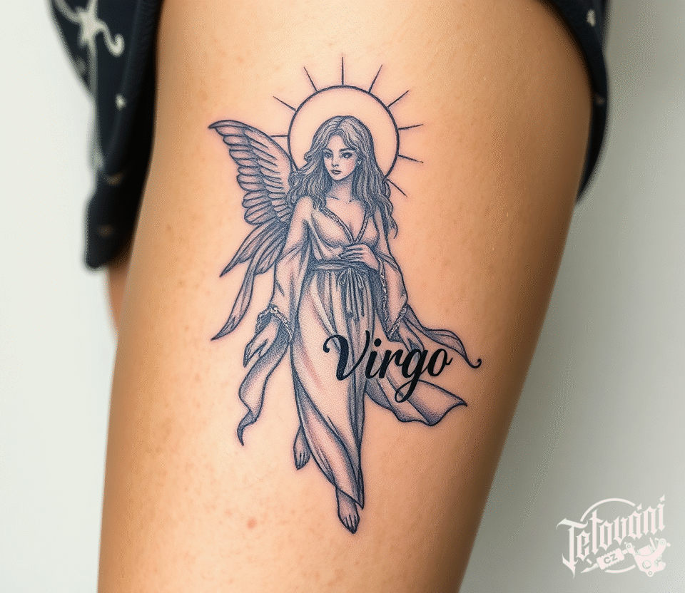Tetování znamení zvěrokruhu Panna na boku stehna