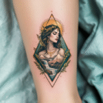 Tetování znamení zvěrokruhu Panna na holeni