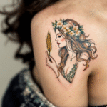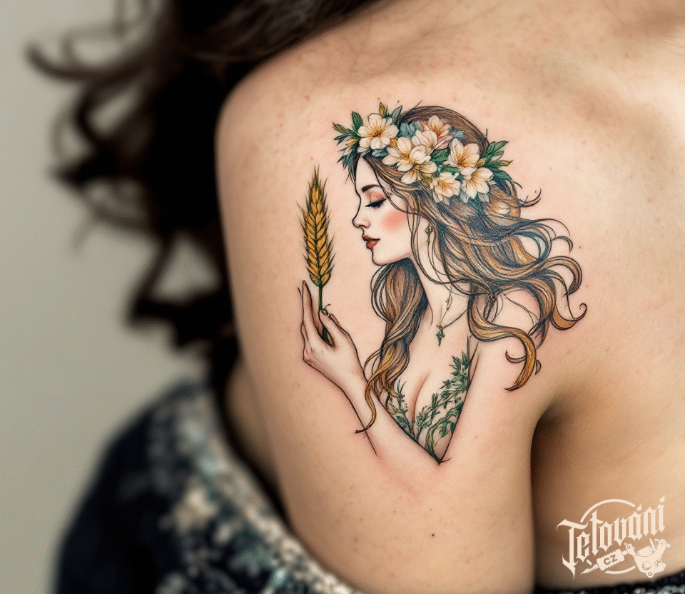 Tetování znamení zvěrokruhu Panna na rameni