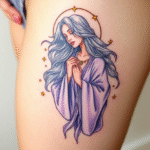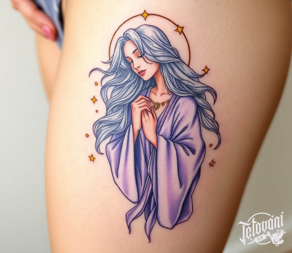 Tetování znamení zvěrokruhu Panna na stehně