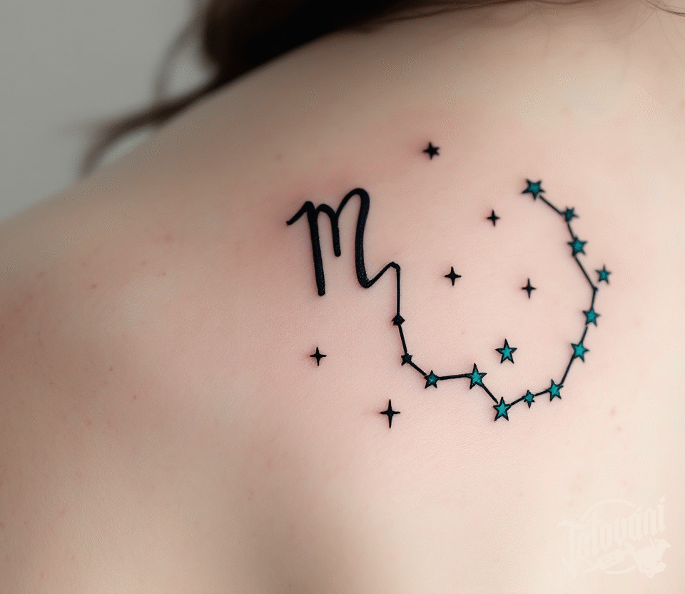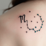 Tetování znamení zvěrokruhu panna, souhvězdí na lopatku