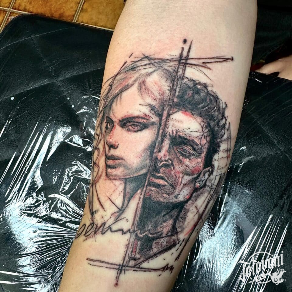 Tetování znamení zvěrokruhu, portréty, Blíženci na předloktí