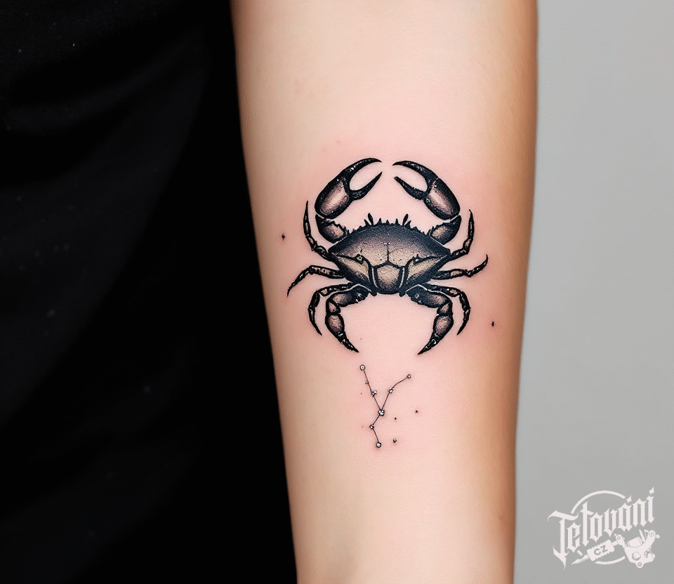 Tetování znamení zvěrokruhu rak a souhvězdí na předloktí