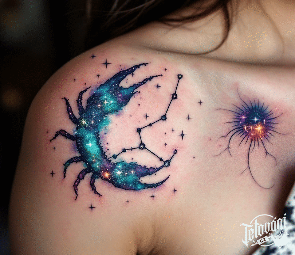 Tetování znamení zvěrokruhu rak, souhvězdí na rameno