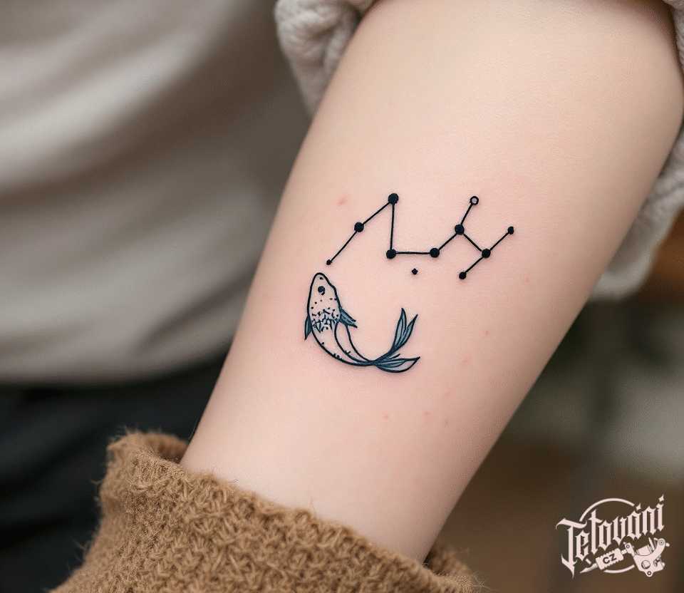 Tetování znamení zvěrokruhu ryba a souhvězdí na předloktí