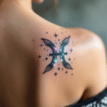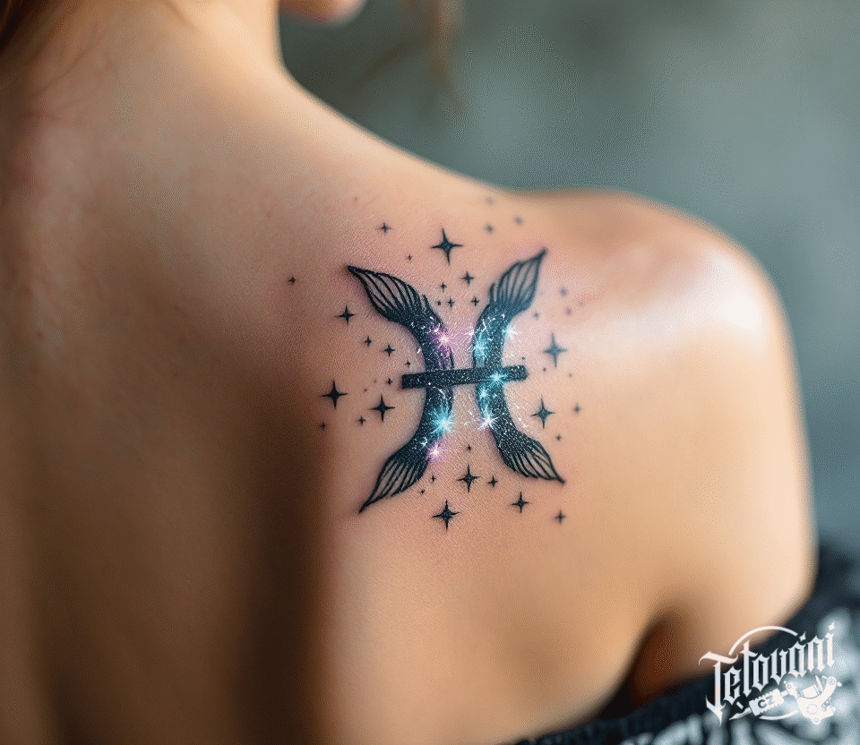 Tetování znamení zvěrokruhu ryby a souhvězdí na lopatku