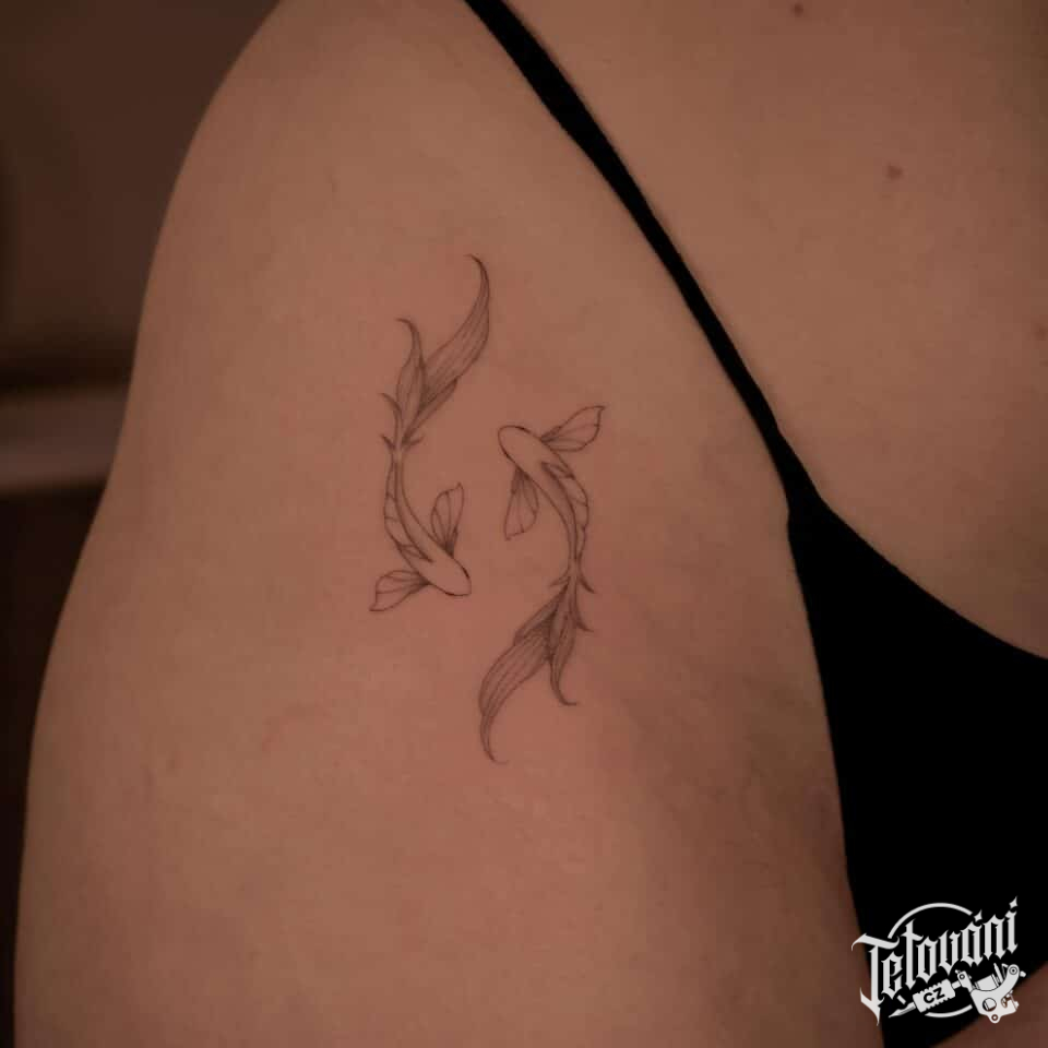 Tetování znamení zvěrokruhu ryby na bok stehna