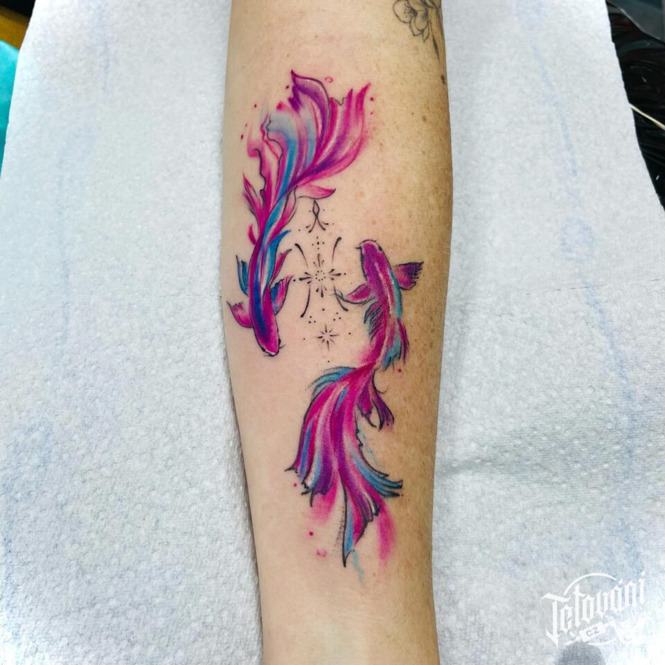 Tetování znamení zvěrokruhu ryby na předloktí