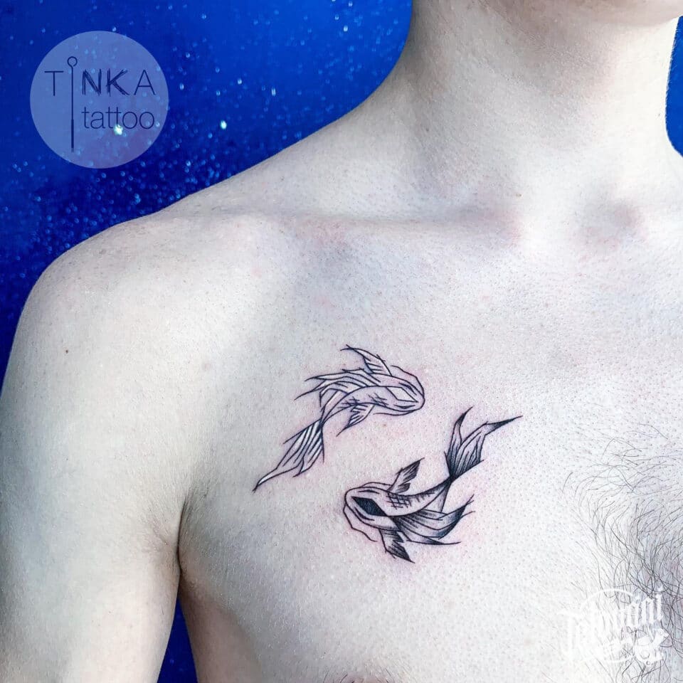 Tetování znamení zvěrokruhu ryby na prso