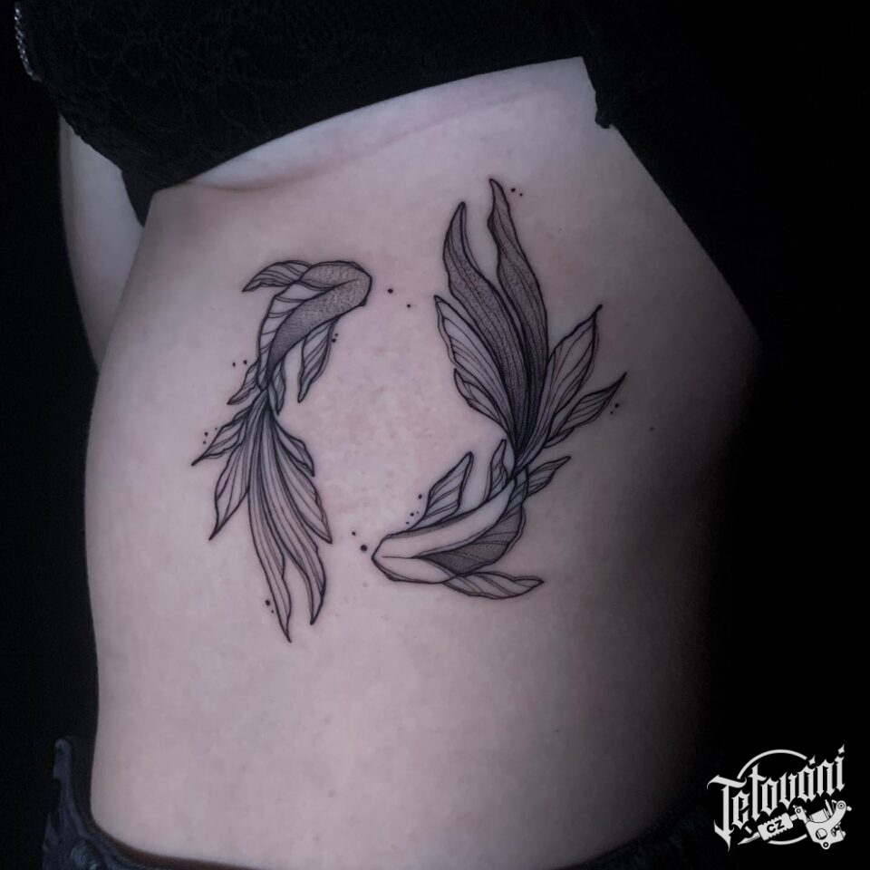 Tetování znamení zvěrokruhu, ryby na žebra