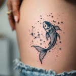 Tetování znamení zvěrokruhu, ryby, souhvězdí na stehno