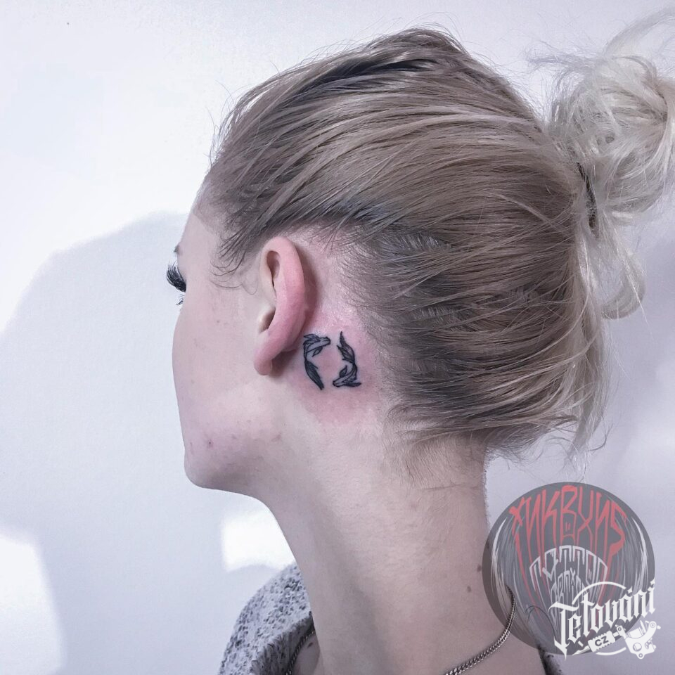 Tetování znamení zvěrokruhu, ryby za uchem