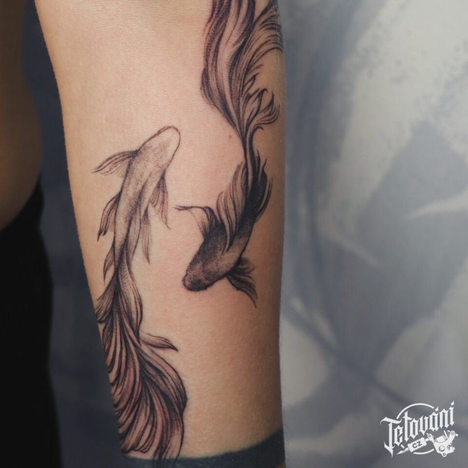 Tetování znamení zvěrokruhu, ryby znamení zvěrokruhu na předloktí