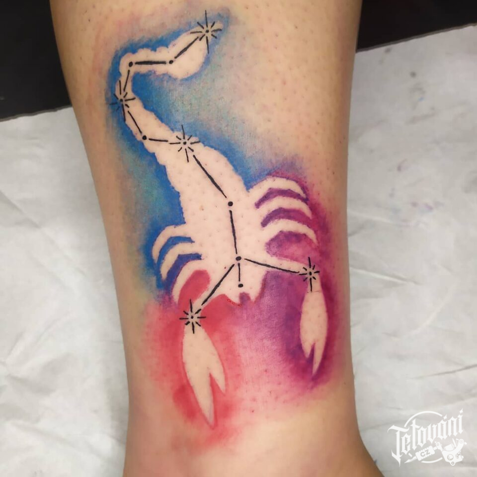 Tetování znamení zvěrokruhu štír na lýtko
