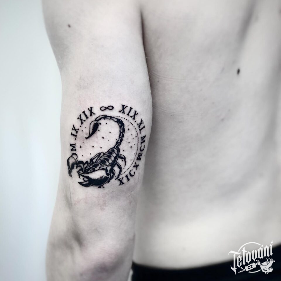 Tetování znamení zvěrokruhu štír na rameno