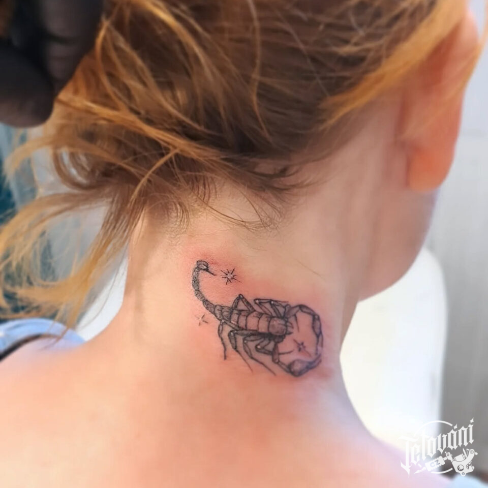 Tetování znamení zvěrokruhu štír, zvíře štír na krk