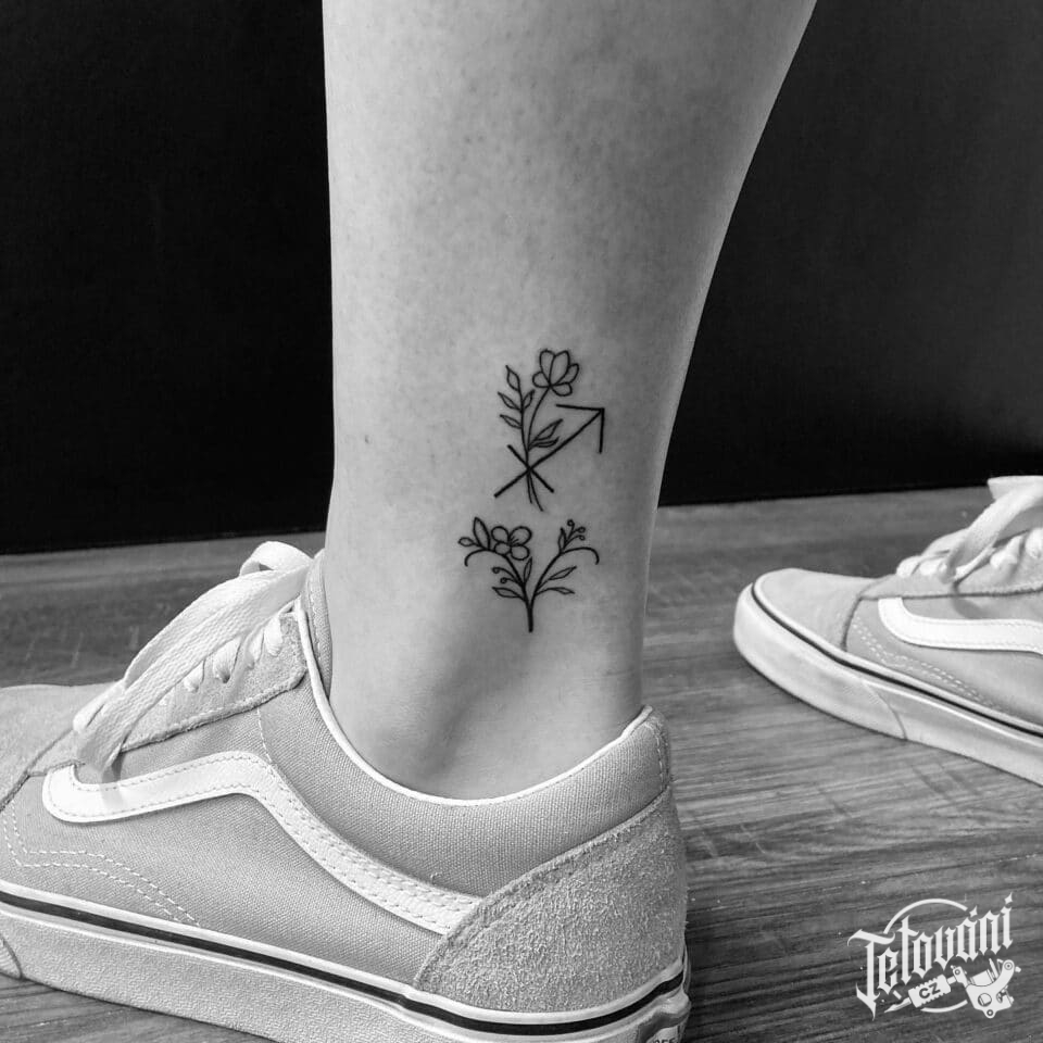 Tetování znamení zvěrokruhu, Střelec a květiny na kotníku