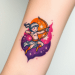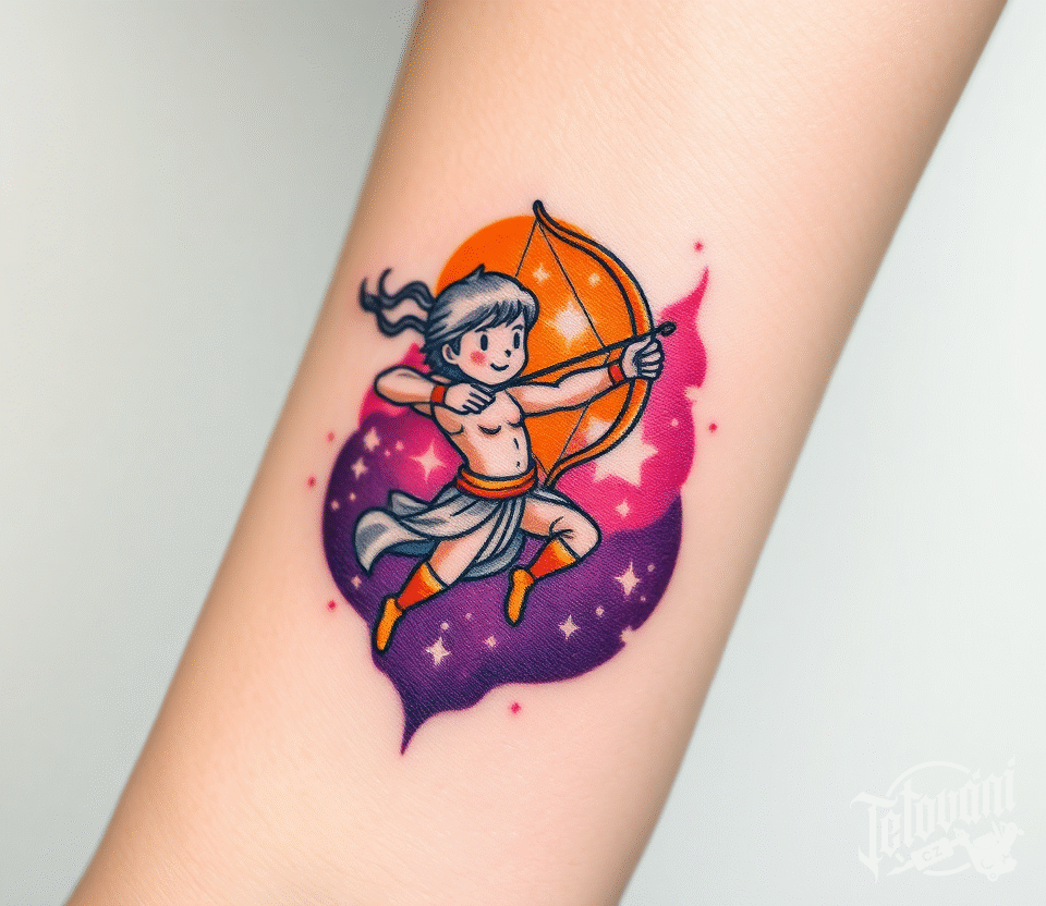 Tetování znamení zvěrokruhu, střelec a vesmír na předloktí