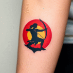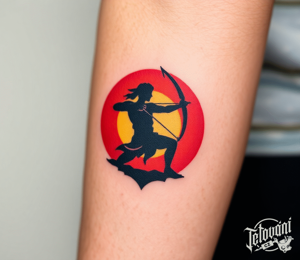 Tetování znamení zvěrokruhu, střelec v terči na předloktí