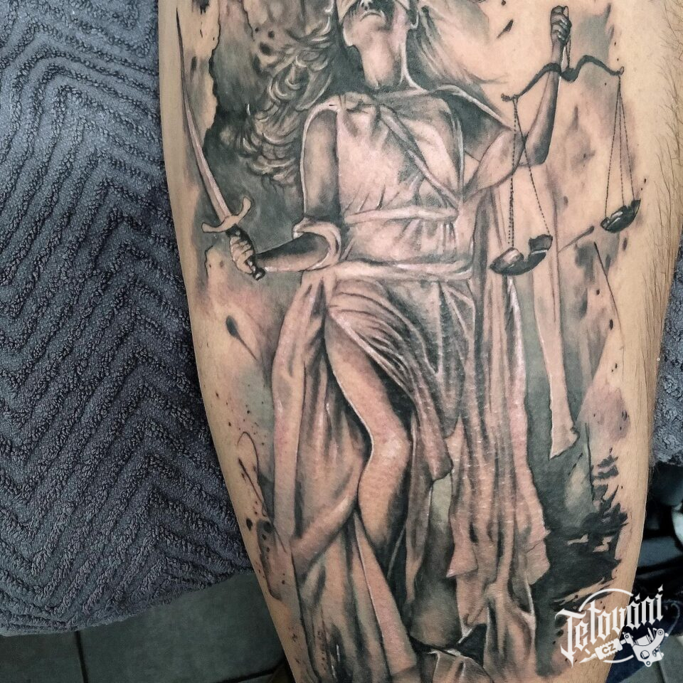 Tetování znamení zvěrokruhu váha na stehno
